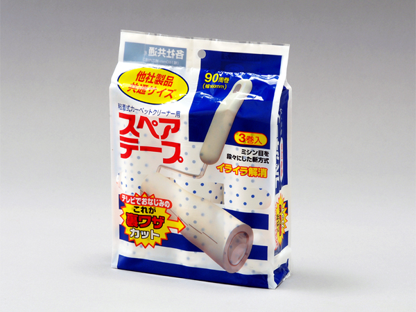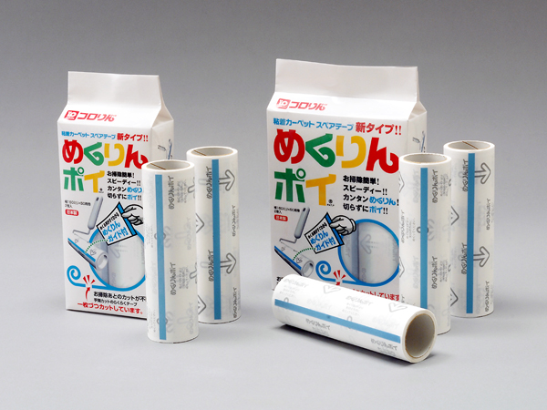 めくりんポイ粘着テープは、お掃除あとのめくりやすさ、使いやすさにこだわり、1枚ずつの重ね巻方式とめくりガイドを付けることで、究極のめくりやすさを実現。